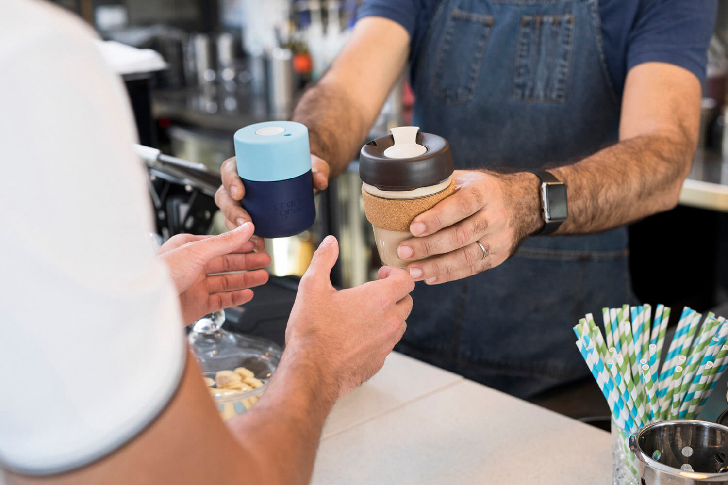 - Bring a reusable cup for take-away coffee, or enjoy a moment to sit down with a ceramic mug!